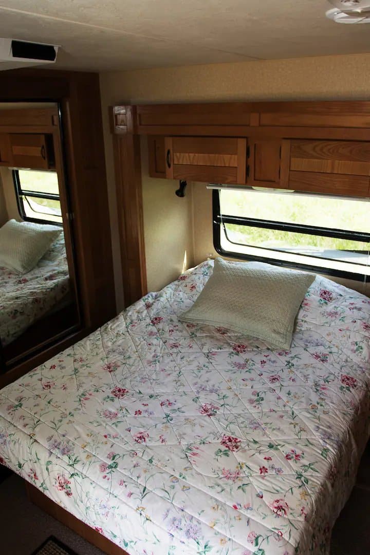 Escape to the tranquil surroundings of Mills Farm and experience the cozy charm of our Luxury 39' Camper. This unique accommodation is perfect for those seeking an intimate retreat amidst nature, whether you’re traveling solo, as a couple, or with another couple.